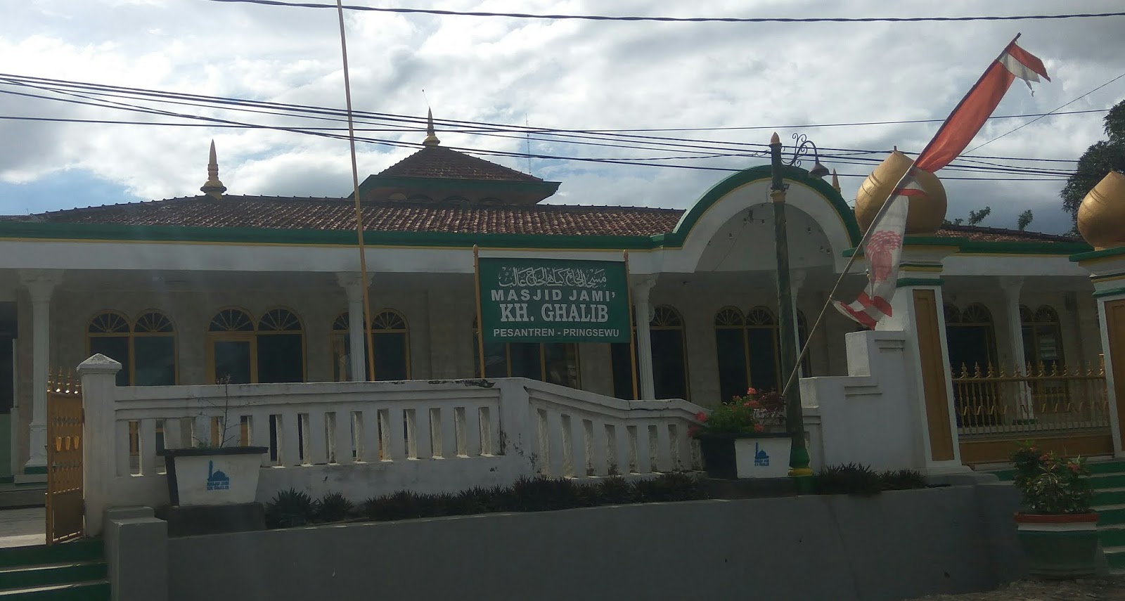 Selanjutnya beliau membeli tanah di Desa Fajarisuk Kecamatan Pringsewu. Keberadaannya diusik oleh Belanda, KH. Ghalib pindah ke sebelah timur dari Fajarisuk yaitu di Desa Bambu Seribu yang sekarang dikenal dengan nama Pringsewu. Beliau membeli sebidang tanah disebelah utara pasar Pringsewu, diatas tanah inilah beliau membangun rumah, masjid pada tahun 1928 yang merupakan masjid pertama di Pringsewu.