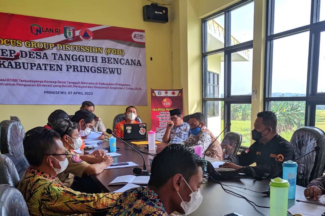 Kegiatan yang dipusatkan di kantor BPBD Pringsewu di kompleks Pemkab Pringsewu ini membahas tentang Desa Tangguh Bencana (Destana).
